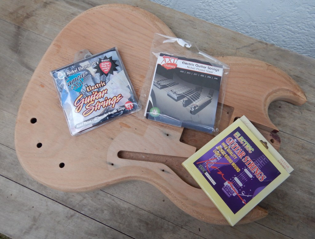 I have a good choice of cheap and cheesy flea market $6 USD guitar strings.